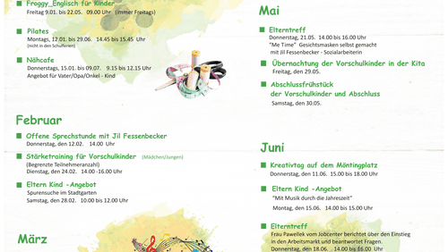 Hier finden interessierte Eltern für das erste Halbjahr 2026 Angebote unseres Familienzentrums. Anmeldungen bitte immer im Kindergarten 0209/84953